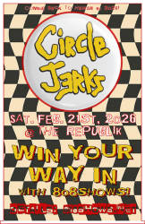 Share the flyer above WITH the hashtag #CJWYWI, plus tag @jason_808shows AND a handful of friends for a chance to win a pair of free tickets to see CIRCLE JERKS on 2/21/26 at The Republik!
